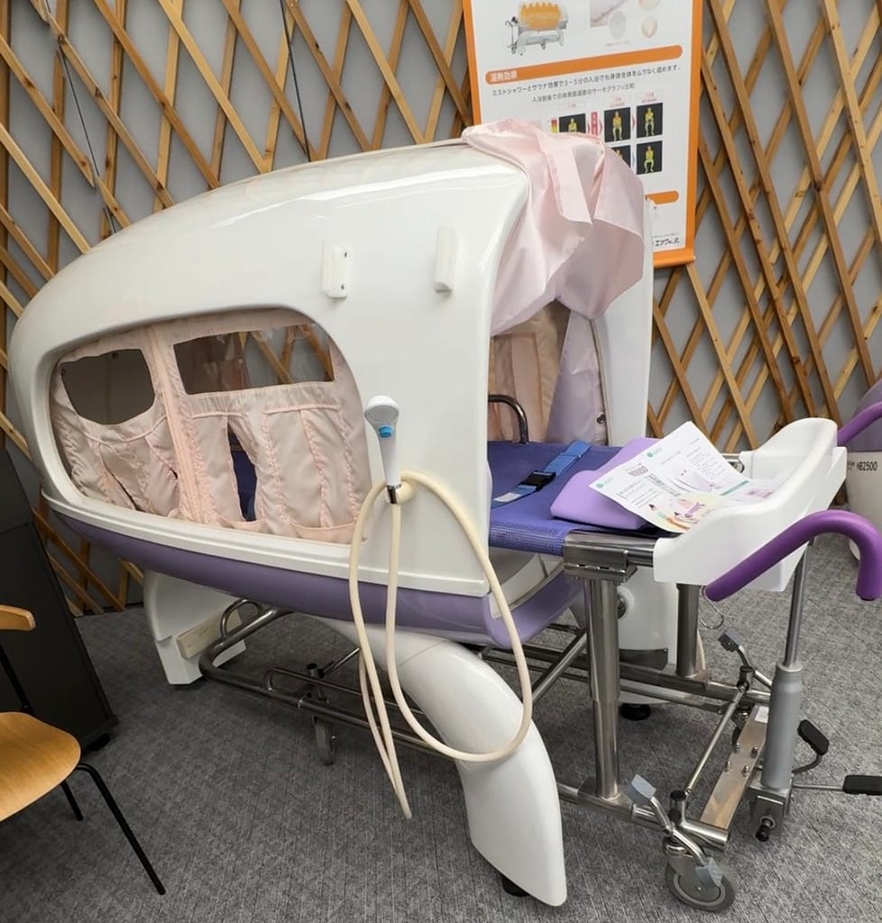 - 「入浴=危険が多い」というイメージがありましたが、この装置は利用者の安心と介助者の安全を同時に実現できる設備だと感じた。入浴介助に不安を抱く現場にとっては、有効な選択肢の一つになると思います。